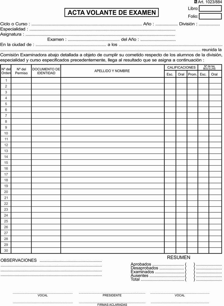Elementos Escolares / Productos / NIVEL SECUNDARIO / Acta Volante de Examen