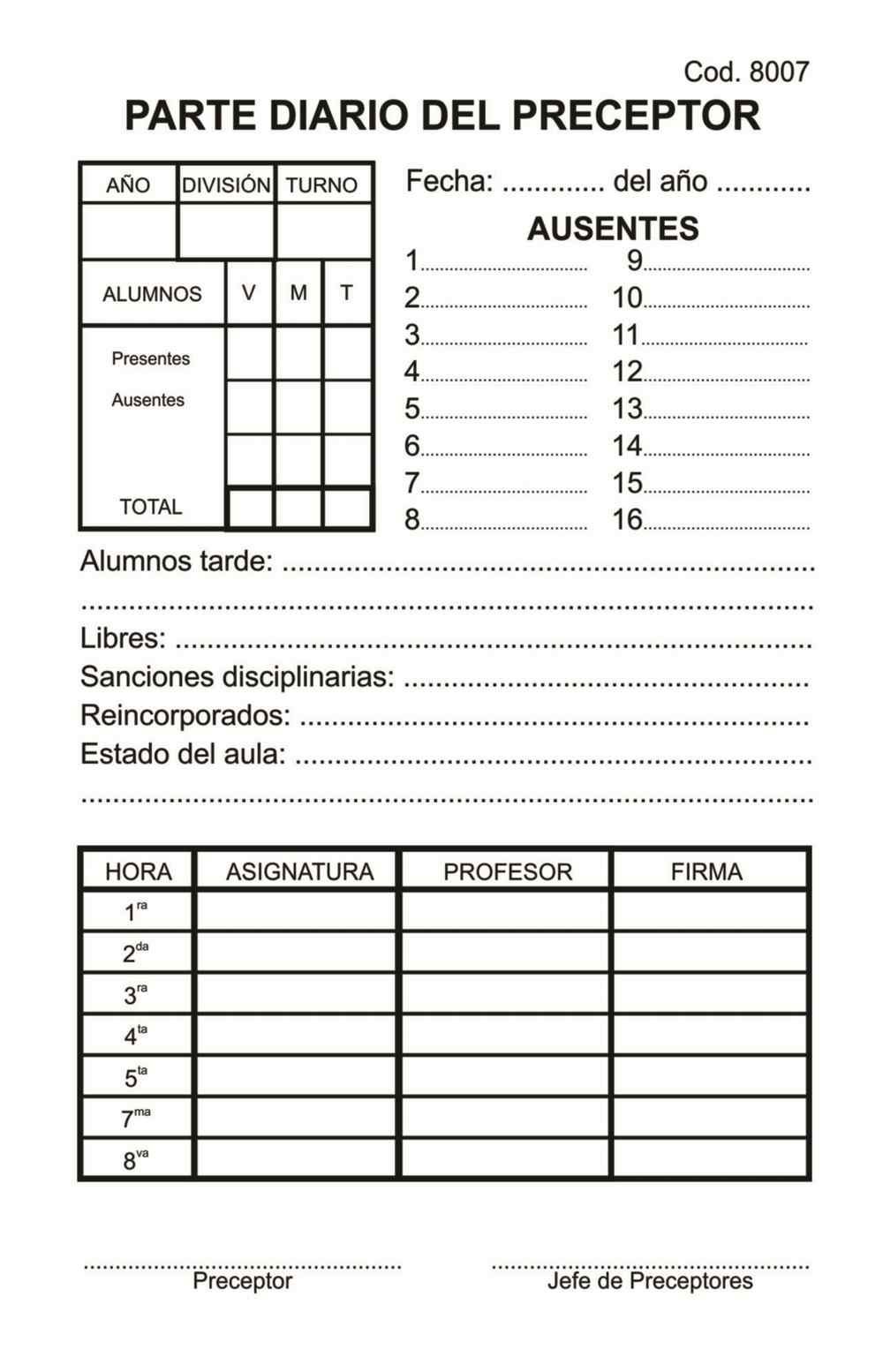 Parte Diario del Preceptor Block X200